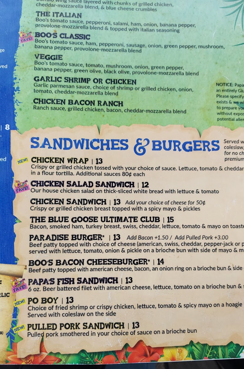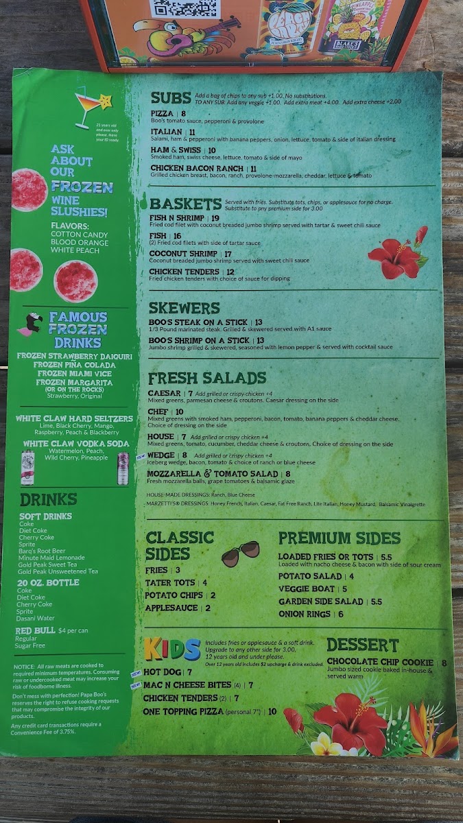Papa Boo's Menu